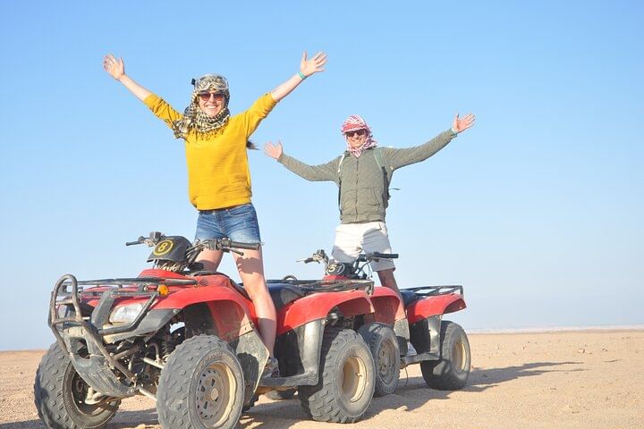 Explore the desert by quad bike on this exciting tour from Marsa Alam. You will be picked up at your hotel and taken to the quad bikes, where you will have the chance to test drive and learn all the important details of the vehicle before setting off on t