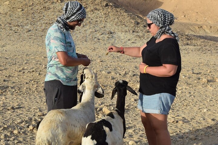 First you will drive your quad bike for 1 hour about 25-30 km away in between the mountains of the Eastern desert to Bedouin village to enjoy visiting a Bedouin tribe and get to know more about their life and traditions