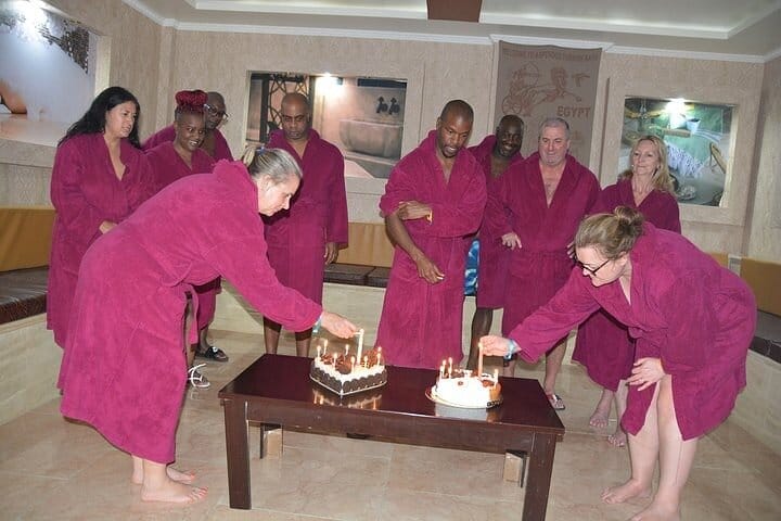 This Cleopatra Hammam experience offers a full, multi-step wellness ritual inspired by ancient Egyptian bathing traditions and enhanced with modern spa luxury. Your journey moves through a soothing combination of sauna, steam, Jacuzzi relaxation, and rest on a heated marble stone, allowing your body to unwind and your skin to prepare for deep cleansing.