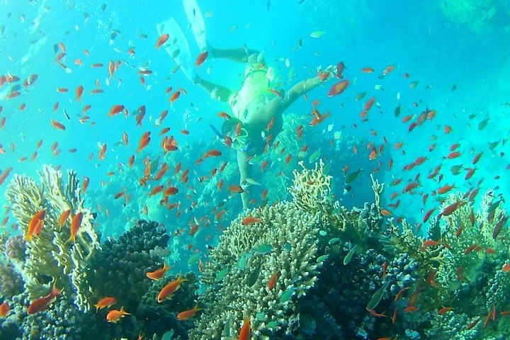Led by professional instructors, you'll visit multiple dive and snorkel sites, each offering unique underwater landscapes and hidden gems of the Red Sea. Between stops, enjoy a freshly prepared lunch onboard and take in the breathtaking sea views as you relax and recharge.