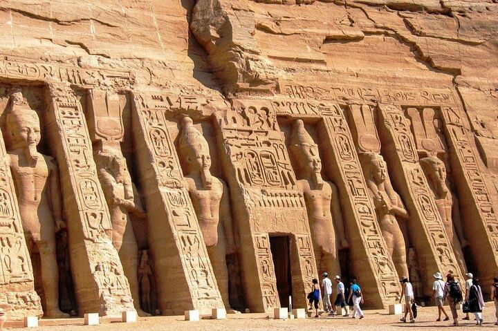 Abu Simbel Temple located in the south of Aswan along the shore of Lake Nasser, is the most famous in all of Egypt after the Giza pyramids. Built by the greatest of the pharaohs, Ramesses II, making them also known as the Temple of Ramesses II or Ramesses II, these massive rock-cut temples marked the southern frontier of the Egyptian Empire with Nubia at the height of its power during the New Kingdom.
