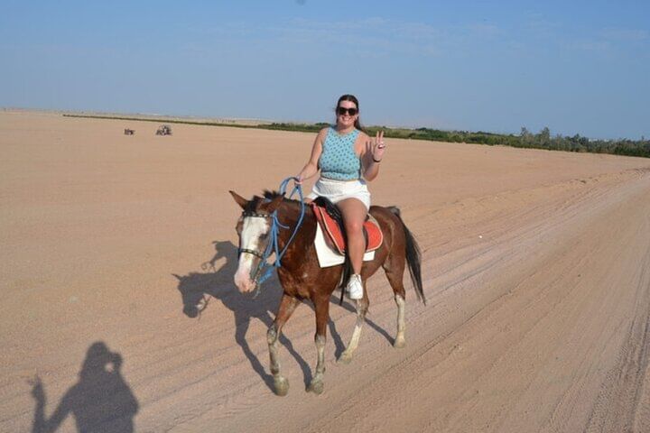 Discover the stunning desert landscapes of Marsa Alam on a one-hour guided horseback ride. Ideal for all experience levels, this peaceful adventure takes you across golden sand dunes with panoramic views of the Red Sea.