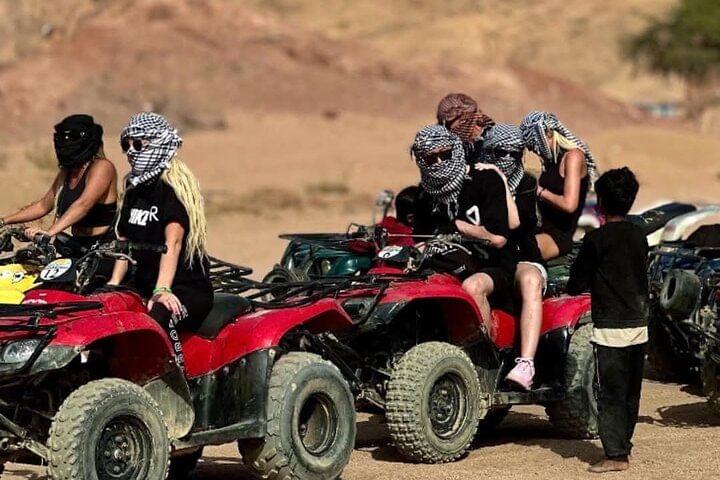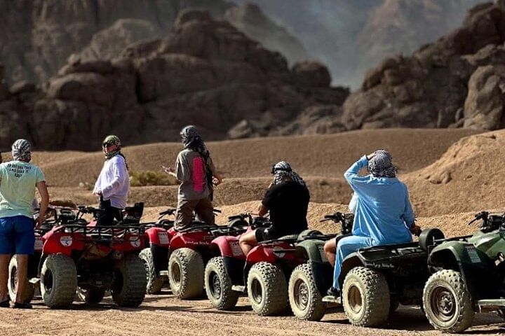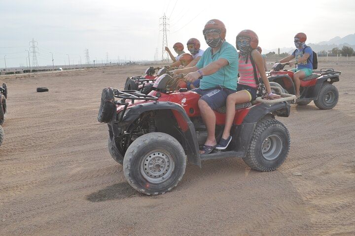 A lovely way to see the local desert going at your own pace on top of your trusty steed. Various times are available and as many hours as you wish. The minimum booking is one hour. A great way for novices to give it a go or for the experienced rider to be put through their paces and Explore the Magic of Red Sea Desert by Quad bike on this exciting tour from Sharm El Sheikh. You will be picked up at your hotel and taken to the quad bikes, where you will have the chance to test drive and learn all the important details of the vehicle before setting off on the tour.