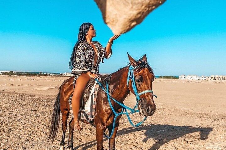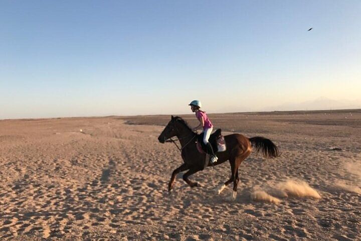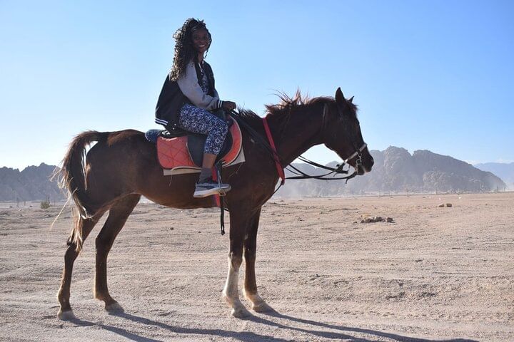 Experience a 2-hour horseback riding journey through the breathtaking desert of Sharm El Sheikh, complete with convenient transfers. Led by skilled instructors, you'll explore the beautiful desert terrain on horseback, suitable for riders of all skill lev