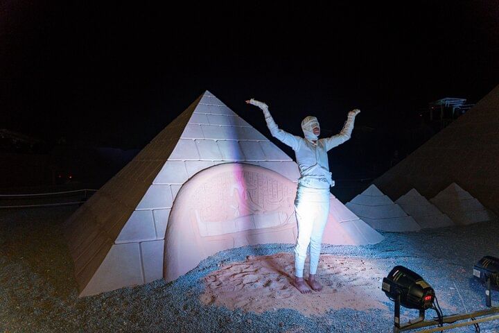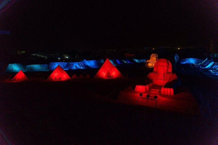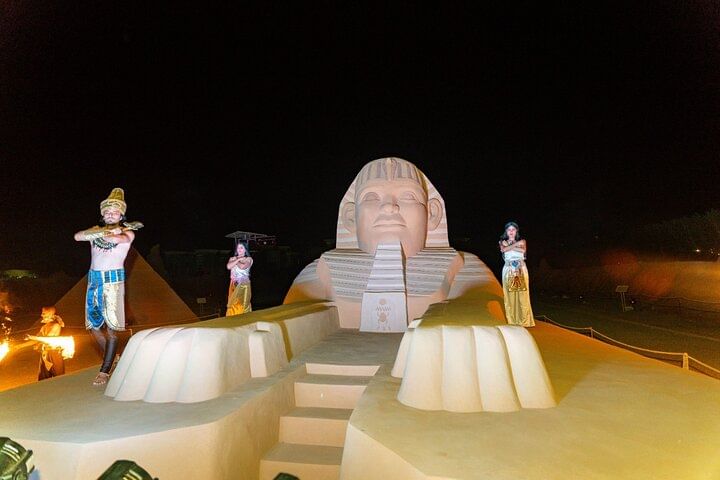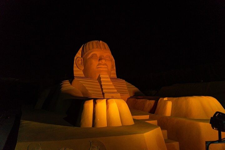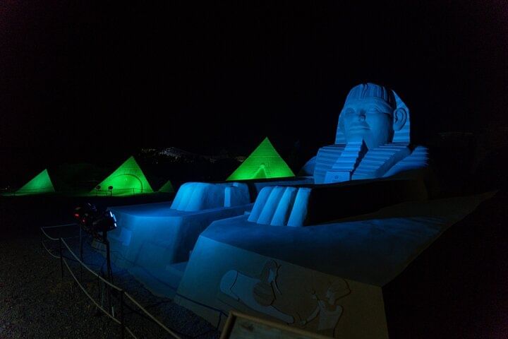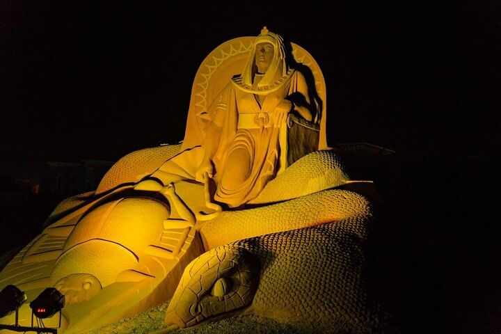 This tour offers a rare combination of culture, entertainment, and art — all in one unforgettable evening. Unlike typical desert dinners, you’ll not only enjoy a traditional Bedouin night with live performances like the Tanoura dance and a thrilling fire show, but also have the chance to visit Sand City Hurghada — the only open-air sand sculpture museum in Africa and the Middle East.