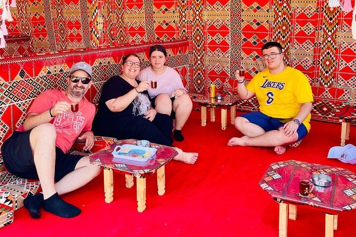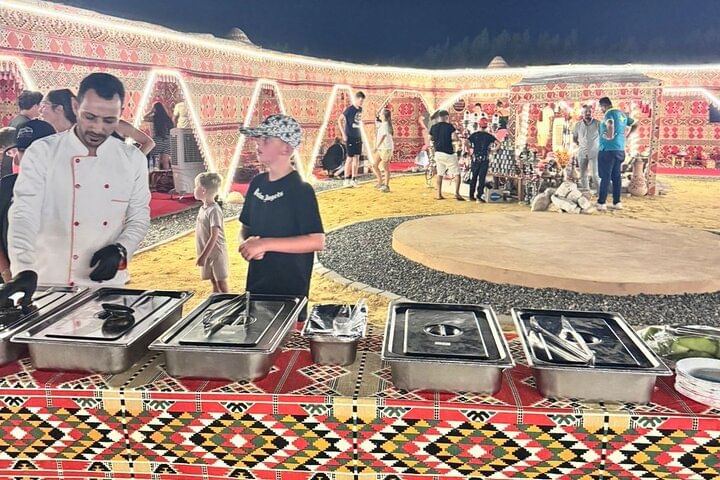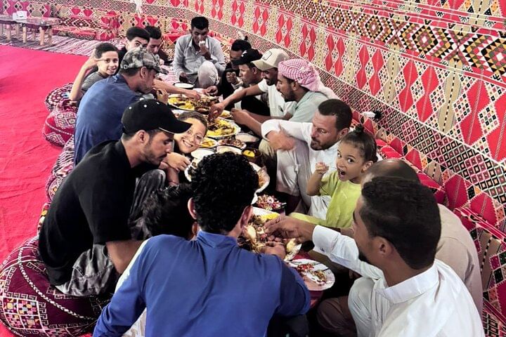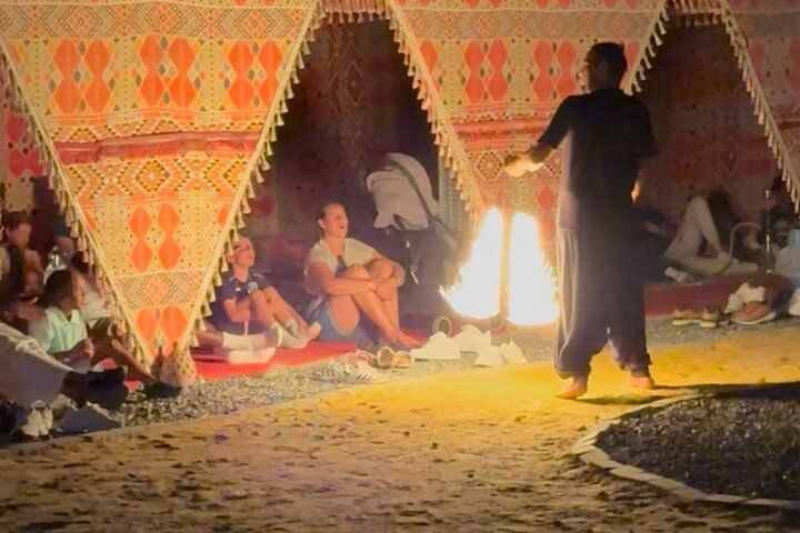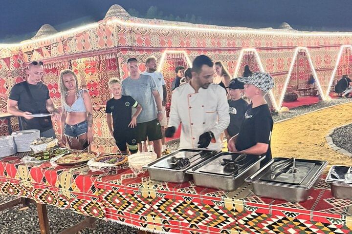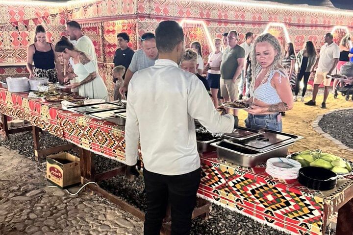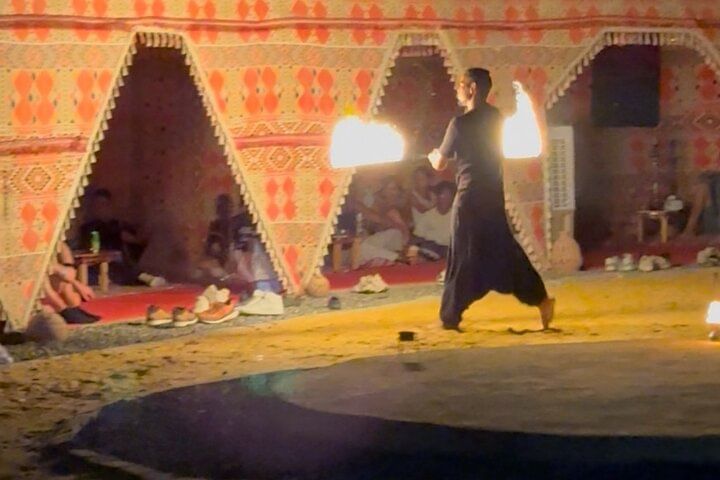 The experience is personalized and flexible, allowing guests to relax, enjoy a home-style Bedouin meal, and explore at their own pace. Whether you're a family, a group of friends, or a couple, this evening blends authentic Egyptian culture, visual artistry, and live entertainment into a unique memory you won't find anywhere else in Hurghada.