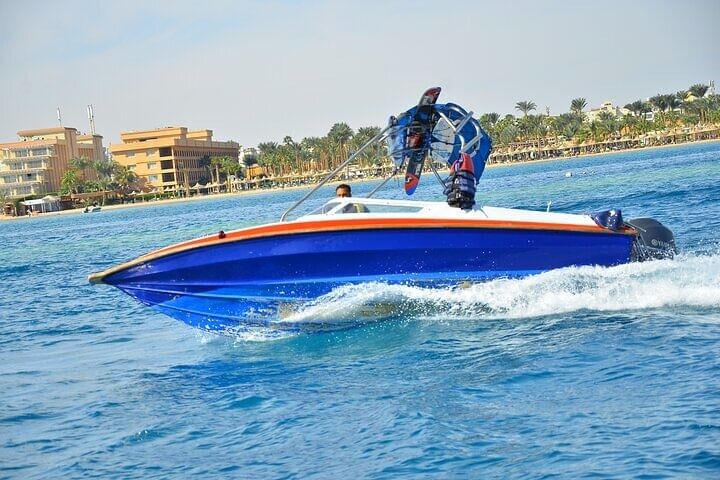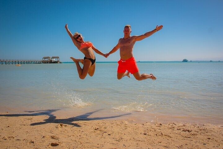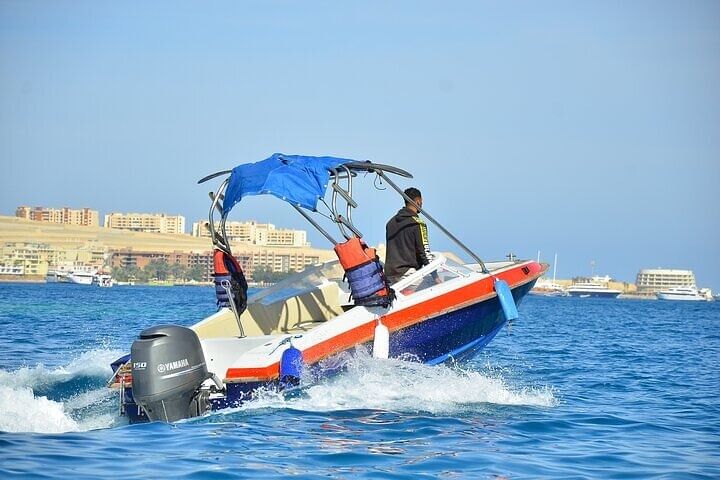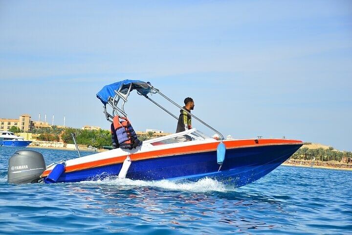 Skip the crowds and enjoy the freedom of your own private speedboat to Orange Bay Island—where the journey is just as exciting as the destination. Unlike group tours, this experience offers speed, privacy, and flexibility, letting you explore the Red Sea your way. Feel the adrenaline as you glide across turquoise waters, then unwind with two full hours on the island's soft white sands. Swim, snorkel among vibrant coral reefs, or simply relax in the calm, clear lagoons. With no fixed schedules or large groups to wait for, you have total control of your time. This small-group setup includes round-trip hotel transfers, a dedicated crew, and panoramic sea views that elevate every moment. Designed for travelers who value comfort, independence, and natural beauty, this isn’t just a ride to Orange Bay—it’s a premium Red Sea escape that combines adventure, serenity, and exclusivity into one unforgettable half-day tour.