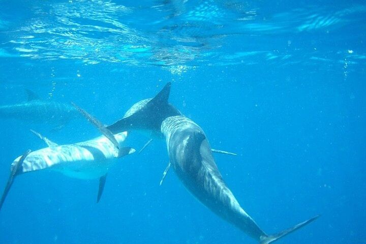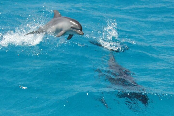 Have you ever dreamed of swimming alongside dolphins in the open sea? This unforgettable semi-private speedboat tour from Hurghada offers a once-in-a-lifetime chance to meet these intelligent and playful creatures in their natural environment. Dolphins are known for their remarkable social bonds, emotional depth, and unique communication through clicks and whistles—seeing them up close in the wild is truly magical. Set against the breathtaking backdrop of the Red Sea, this adventure takes you to Dolphin House, one of Hurghada’s top spots for dolphin encounters. Enjoy warm sunshine, turquoise waters, and vibrant coral reefs, creating a perfect mix of marine discovery and natural beauty you’ll never forget.