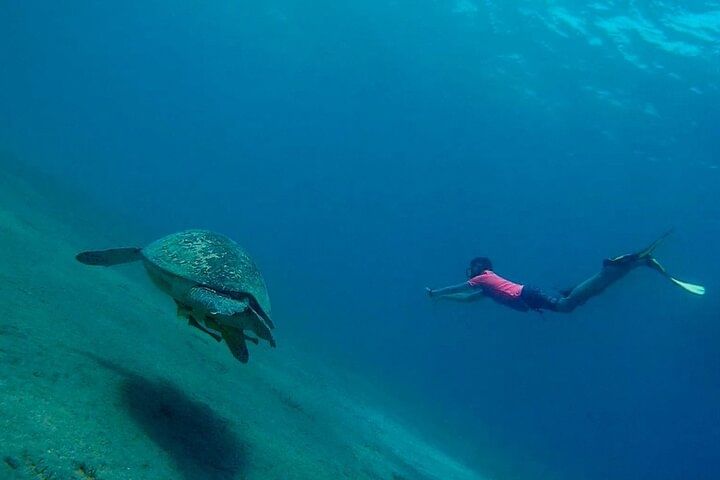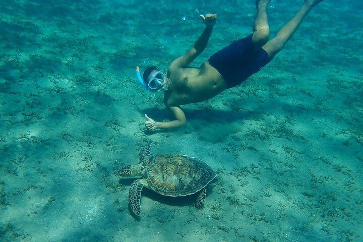 Explore vibrant coral reefs at different depths and encounter incredible marine life, from graceful sea turtles and stingrays to playful dolphins. Unlike typical snorkeling excursions, this trip delivers a deeper, more immersive underwater journey. A freshly prepared lunch served on board adds to the convenience, making it a truly all-inclusive day on the water.