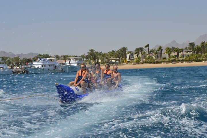 Experience the ultimate desert adventure in Sharm El Sheikh, a thrilling combination of land and water-based activities. Conquer the dunes on an ATV, ride a majestic camel, soar through the sky with parasailing, and explore the underwater world with a banana boat and glass bottom boat. Enjoy a traditional Bedouin tea and savor a delicious lunch while taking in the breathtaking scenery. This action-packed adventure offers something for everyone, from thrill-seekers to nature lovers.