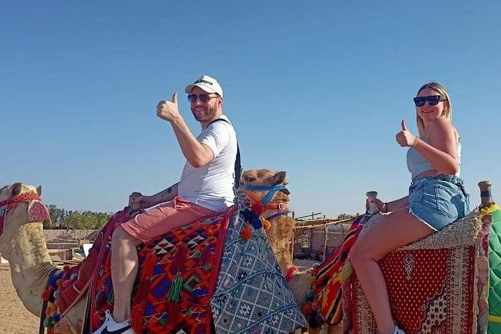 Experience the true spirit of Egypt with this authentic camel riding experience in Hurghada. Ride gentle, well-trained camels across golden desert dunes and take in the timeless beauty of Egypt’s landscape. Guided by expert locals, you’ll discover the deep-rooted Bedouin culture and traditions that make this activity truly special. Safe, family-friendly, and suitable for all skill levels, it blends culture, comfort, and adventure — offering a peaceful escape into the heart of the desert.