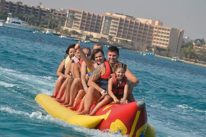 Your day begins with a scenic boat ride across the stunning waters of the Red Sea, heading toward the picturesque Orange Island, famous for its tranquil ambiance and beautiful sandy shores. The island sets the perfect stage for relaxation and fun.