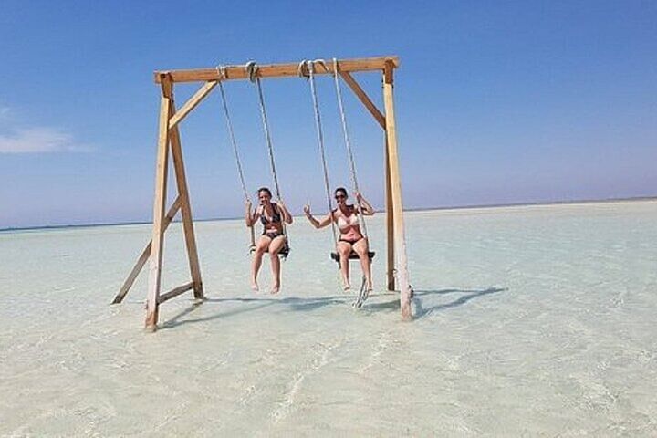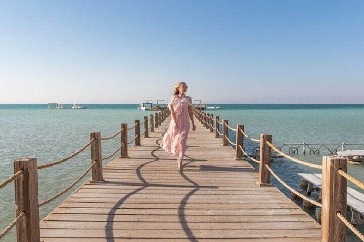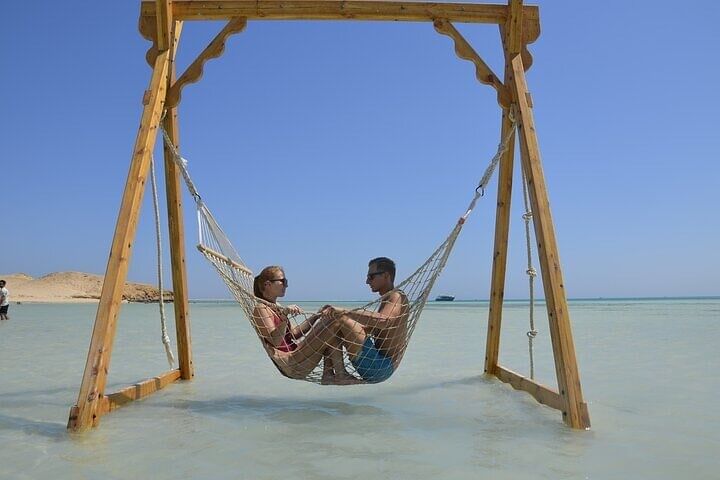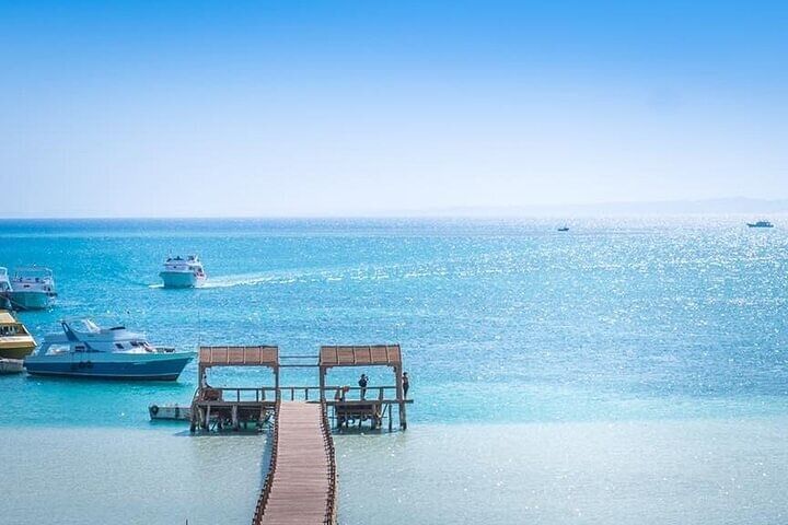 Take advantage of full-day snorkeling and water sports adventure to Orange Bay Island from Hurghada. Sail the crystal-clear waters of the Red Sea aboard a deluxe cruise boat, complete with professional snorkeling guides, showers, and all the comforts you