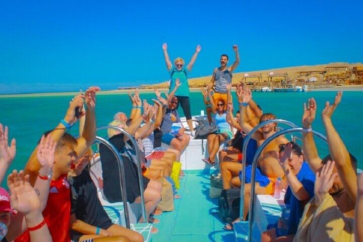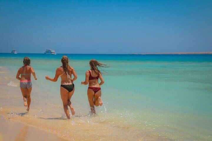 Experience the ultimate Red Sea adventure with a full-day snorkeling trip from Hurghada to Orange Island. Cruise over crystal-clear waters, soak up the year-round sunshine, and dive into vibrant coral reefs teeming with marine life. Spend two unforgettable hours on Orange Island, where you can snorkel in turquoise lagoons, unwind on white sandy beaches, and capture stunning views. Enjoy a freshly prepared buffet lunch on board your boat while surrounded by the beauty of the open sea. This all-in-one experience blends relaxation, exploration, and underwater wonder — making it a must-do in Hurghada.