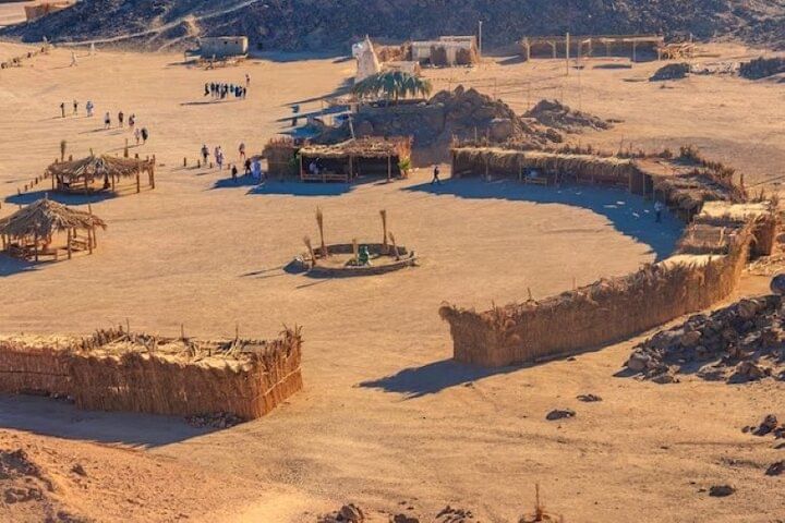 Midway, pause the ride to explore a traditional Bedouin village—share a cup of herbal tea, meet welcoming locals, and even enjoy a short camel ride that connects you to the timeless rhythm of desert life. At the echoing valley, call out and hear your voice bounce off the canyon walls—a magical reminder of the vast silence that defines the Sinai.