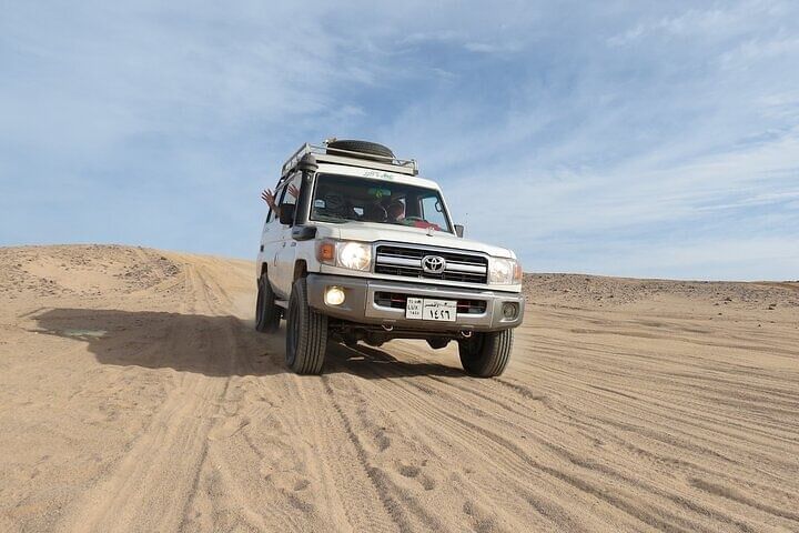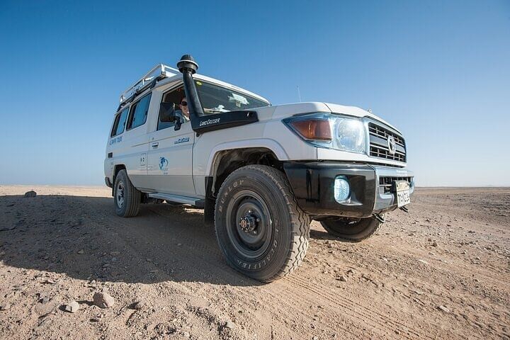 Experience an exhilarating Jeep & Quad safari through the vast desert landscapes of Marsa Alam. Your adventure begins with a convenient hotel pickup, where you'll be driven to the Sahara
