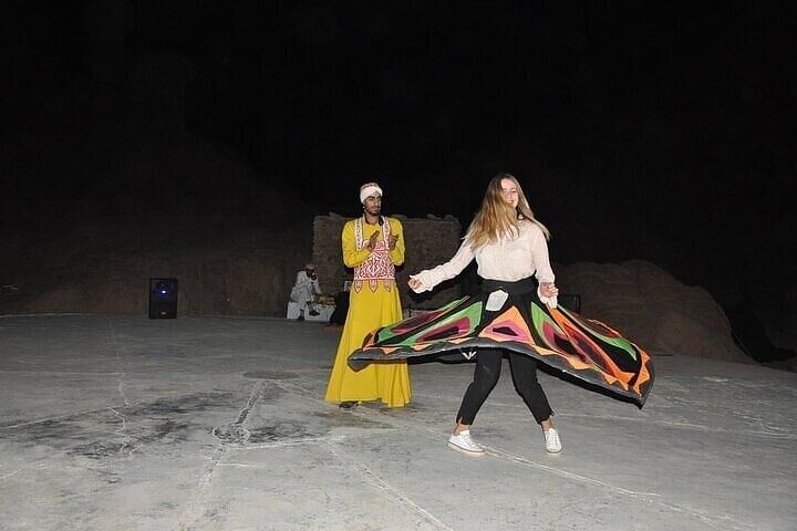 As the sun sets, the desert becomes a glowing stage of firelight, rhythm, and color, featuring mesmerizing Tanoura and belly-dance performances under a starlit sky. Few experiences offer such stunning contrasts—action-packed adventure by day and warm, magical moments by night.