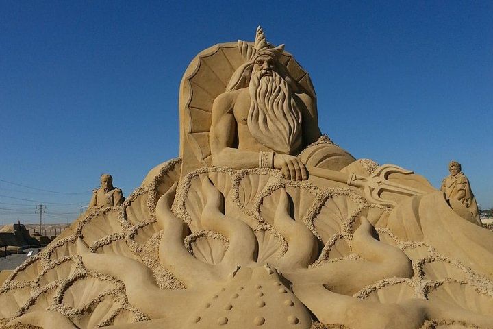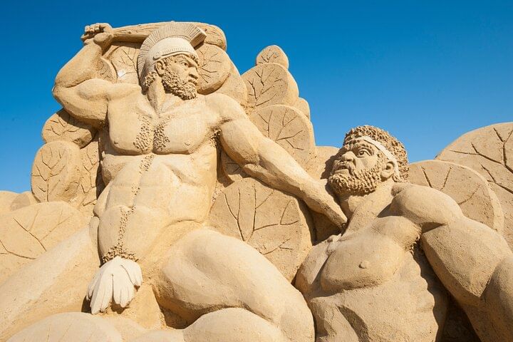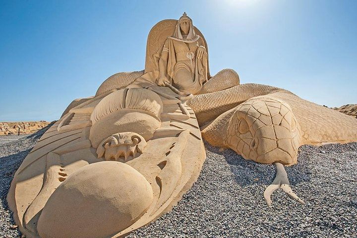 Some sand sculpture artists gathered from around the world to carve statues on the sand in the open air, but in a very specific and precise way that only a few people around the world recognize , allowing the statues carved on the sand to withstand harsh weather conditions such as strong winds, rain, or snow. 42 world-class sculptors from Russia, Germany, America, and Turkey participated in the process of carving figures within the Sand Museum, which took 7 months to finish and used 12,000 tonnes of sand and 15,000 tonnes of water.