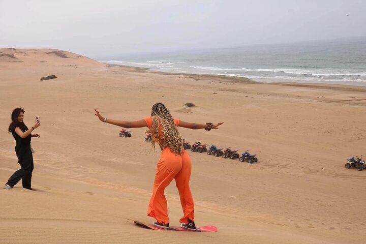 Dive into an unforgettable experience that fuses heart-pounding sandboarding thrills with the authentic charm of Moroccan culture. Start your journey with a flavorful local breakfast, then ride across golden dunes overlooking the Atlantic, explore hidden caves, and soak in the stunning contrast of desert and sea.