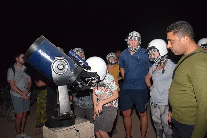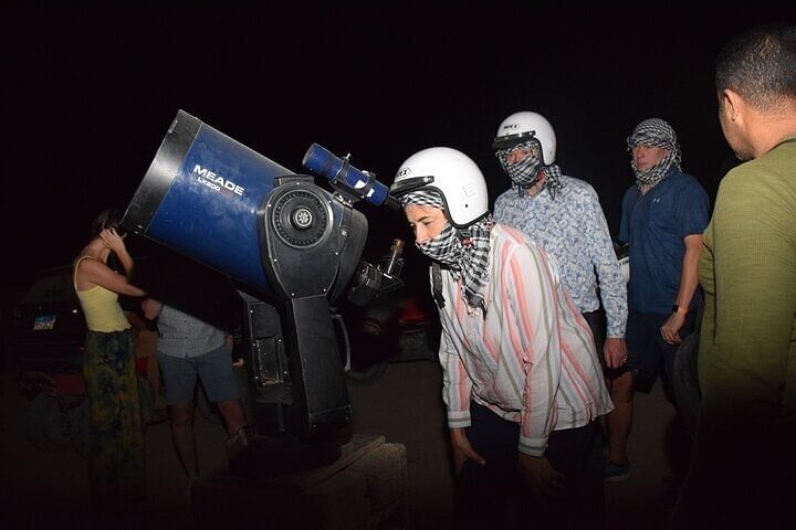 What makes this Hurghada desert safari unique is the perfect combination of adventure, culture, and stargazing. Unlike a regular excursion, this trip takes you far from the city lights into the heart of the desert, where the sky is crystal clear. Guests not only enjoy the thrill of a jeep ride and camel trek but also get hands-on with Bedouin traditions—from bread baking to exploring handmade crafts. The sunset views are breathtaking, followed by an authentic barbecue dinner served in a candlelit Bedouin tent for a romantic, unforgettable atmosphere. The highlight is a guided stargazing session with a professional astronomer, making this tour both enriching and magical. It’s a rare chance to combine desert adventure with cultural discovery and cosmic exploration—all in one unforgettable evening.
