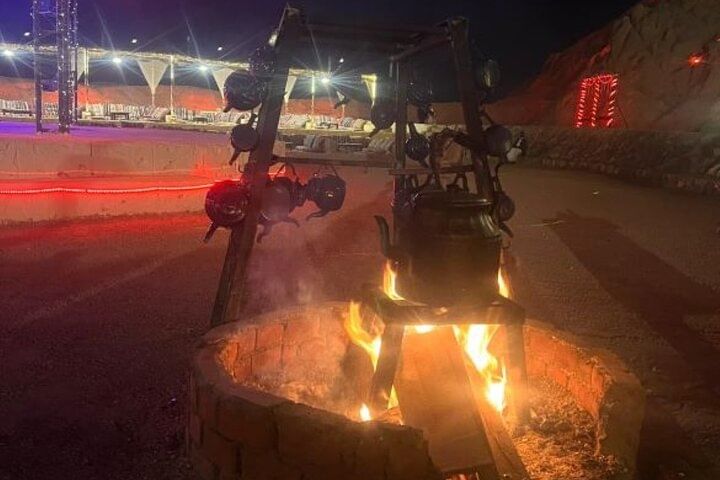 Immerse yourself in an unforgettable evening in Sharm El Sheikh, where ancient traditions and the beauty of the night sky blend seamlessly. Begin your journey with a comfortable ride from your hotel to a traditional Bedouin camp, where you're greeted with