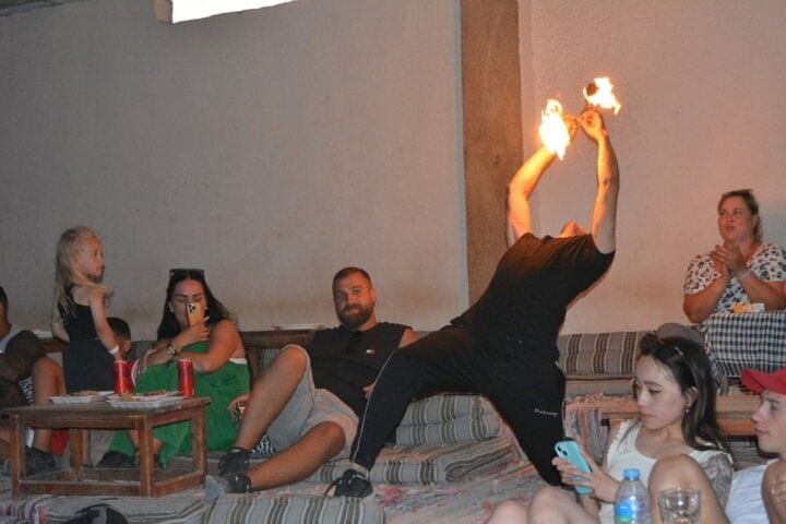 End the night with a thrilling fire show in the open desert. With round-trip transfers, stargazing, and cultural entertainment, this unforgettable experience is perfect for couples, families, and small groups.