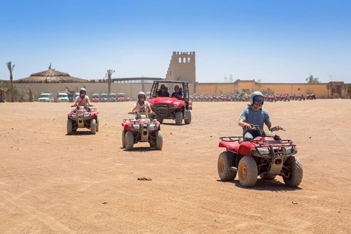 Begin your tour with a thrilling ride across the desert sands on an ATV quad, then hop into a 4×4 dune Jeep for a unique and exciting driving experience through the golden dunes.